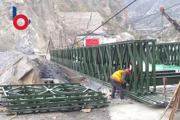 江蘇貝雷鋼橋有限公司生產秉承服務人民,讓客戶滿意的宗旨,為客戶提供優(yōu)質的產品和專業(yè)的服務,在架設過程中,由于四排單層加強型鋼橋難度較大并且架設地點在較為偏僻的山區(qū),所以總體架設難度較大。貝雷鋼橋的技術人員和甘肅人民不怕困難,發(fā)揚不怕苦、不怕累的精神,克服在架設過程中的種種困難,圓滿的完成了此次工程。